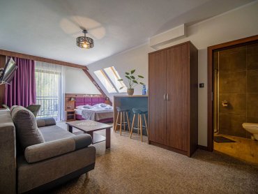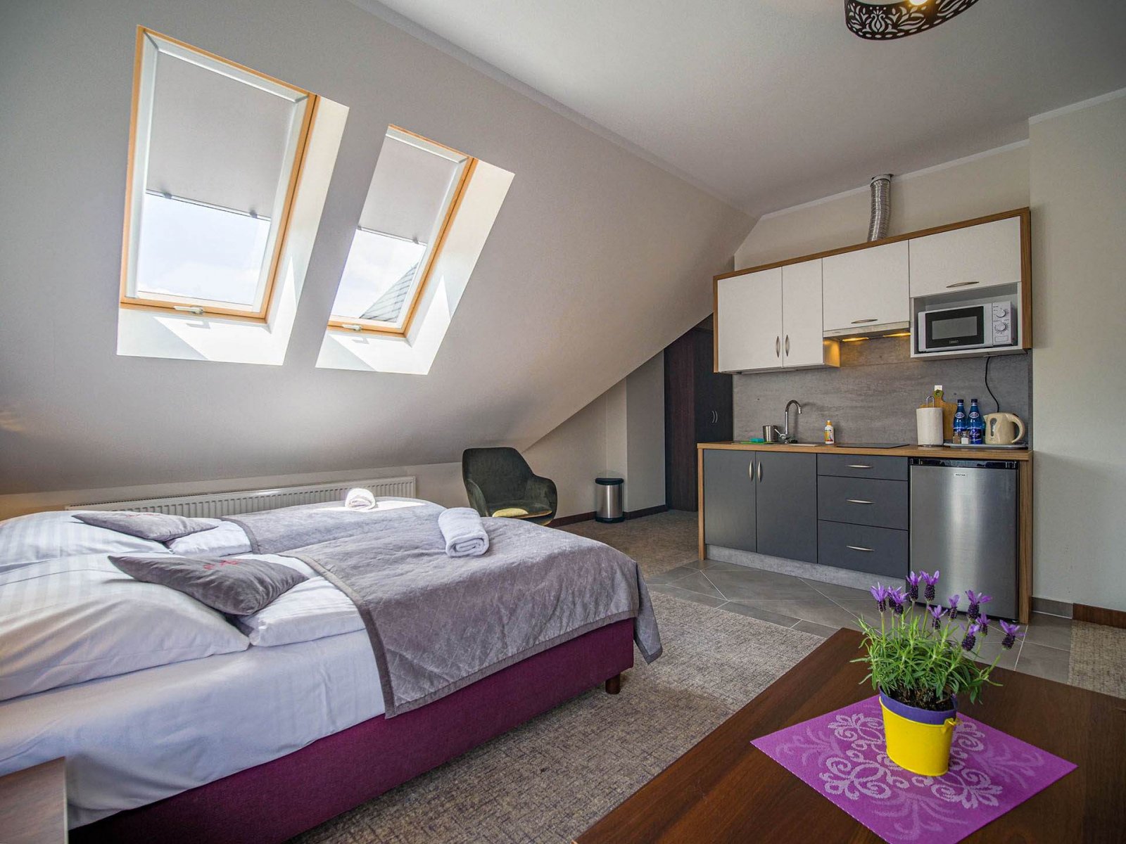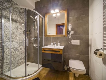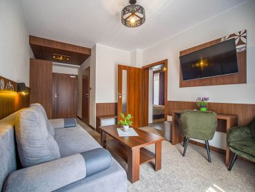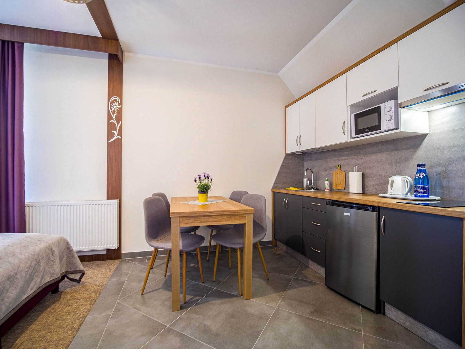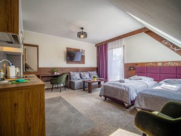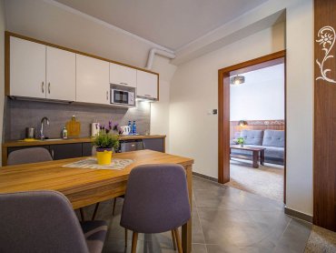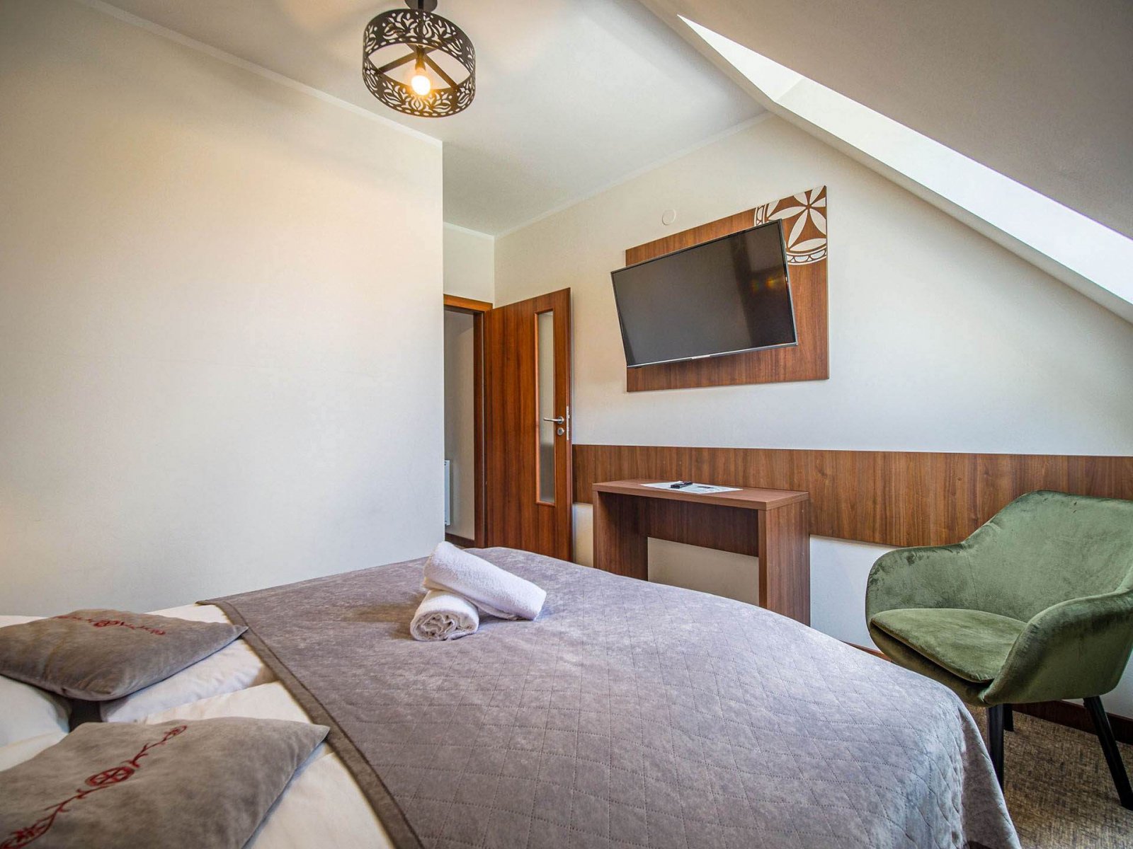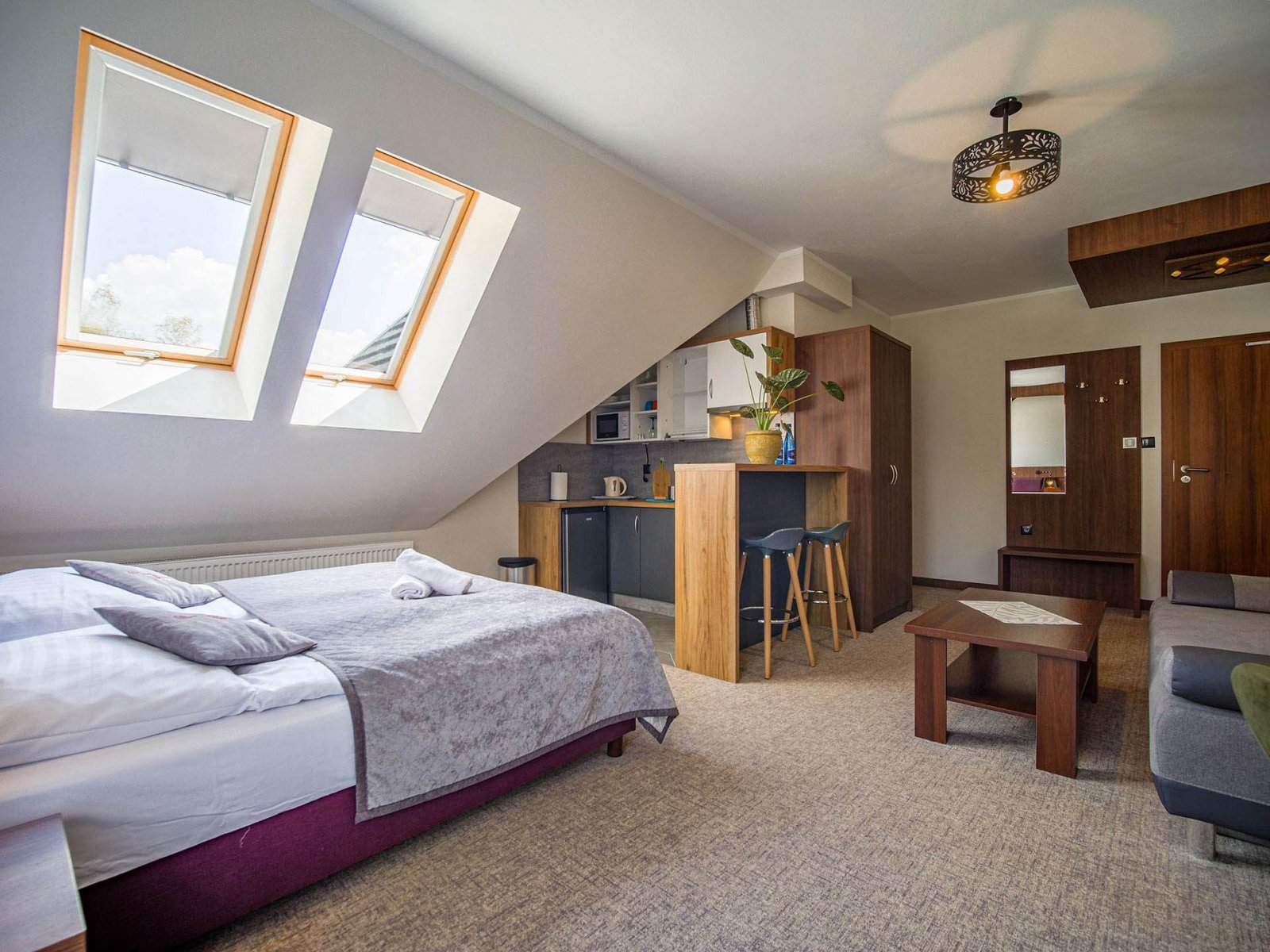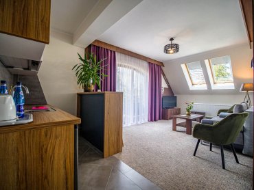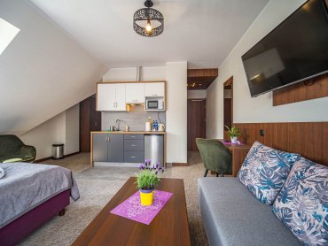 Nowy obiekt niedawno oddany do użytku. Bardzo blisko centrum, 650 metrów. Nowoczesne wnętrza łączą się z regionalnymi elementami. Jednoczesna bliskość centrum i przyrody , liczne tereny zielone i odwiedzające nas sarny. Pokoje i apartamenty bardzo przestronne, duże wygodne łazienki, dobrze wyposażone aneksy kuchenne, duże tarasy i balkony widokowe. Duży pełen zieleni ogród.